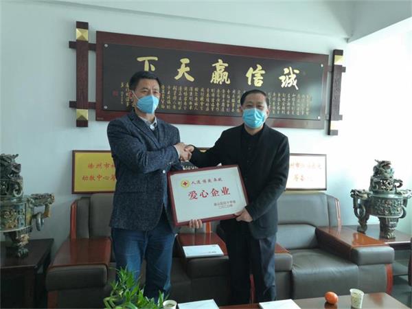 最后泉山区红十字会给半岛·体育(中国)官方网站-登陆入口颁发了爱心企业牌匾,并合影留念。